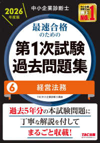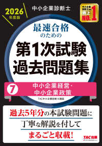 • TAC中小企業診断士講座編著 ; 2026年度版. -- TAC出版事業部, 2025. -- (中小企業診断士 . 最速合格のための第1次試験過去問題集 ; 7). -- 巻号等:2026年度版<図書>